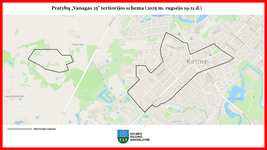 Ateinantį savaitgalį gyventojai raginami išlikti budriais, Kelmės miesto ir Lopetiškių viensėdyje vyks Lietuvos Šaulių sąjungos organizuojamos pratybos „Vanagas 25“. Pratybų metu Kelmės miesto ir Kelmės apylinkių seniūnijų teritorijose gali judėti skiriamaisiais ženklais pažymėta karinė technika, ginkluotosios šaulių pajėgos, kilti bepiločiai orlaiviai, gali būti girdimi šūviai ir sprogimai, miesto gatvėse gali būti išdėstyti kontrolės postai, gali būti stabdomas ir tikrinamas transportas. Pratybose dalyvauja Kelmės priešgaisrinė gelbėjimo tarnyba ir Telšių apskrities vyriausiojo policijos komisariato Kelmės rajono policijos komisariatas.
